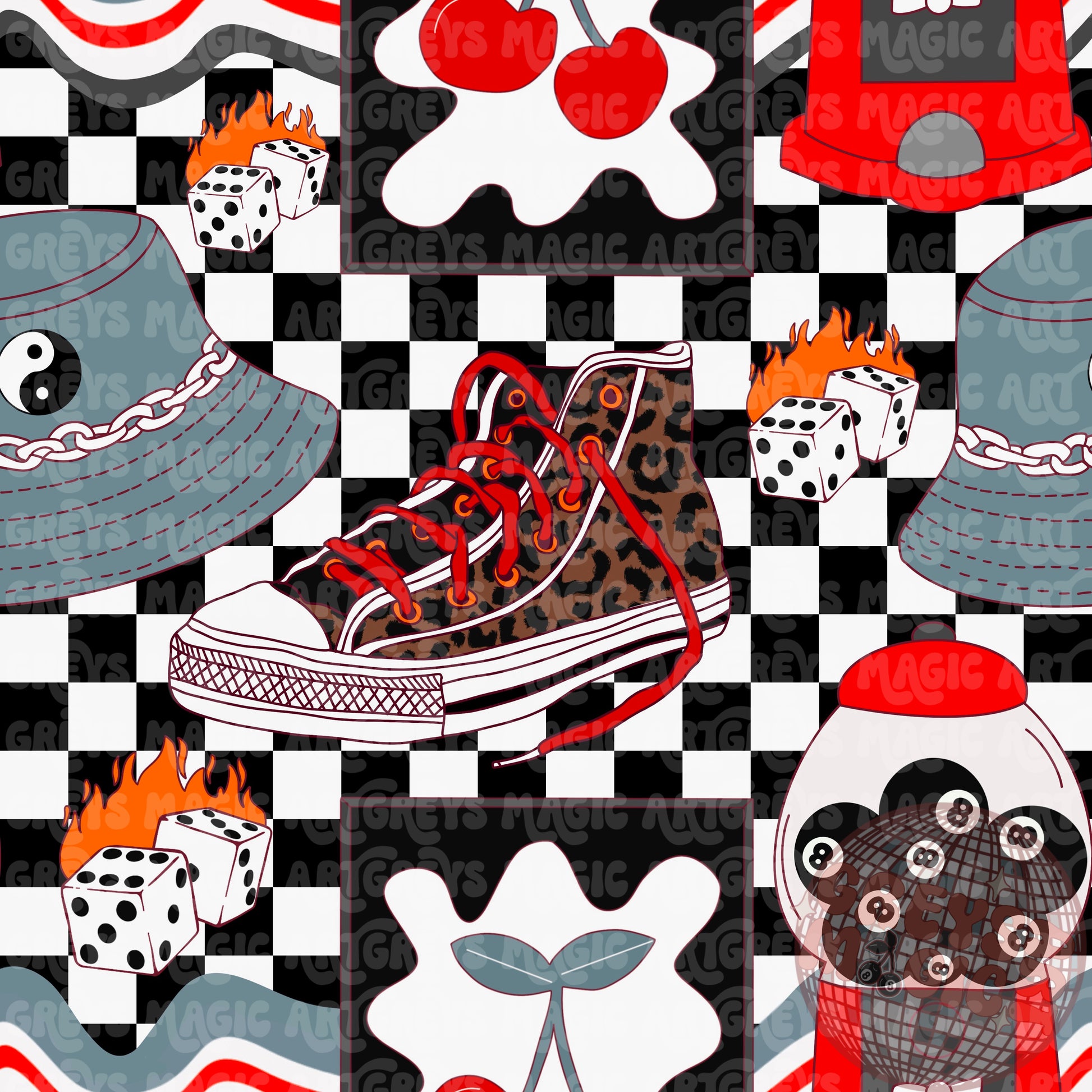 Checkered 8ball Gumball Retro Seamless File